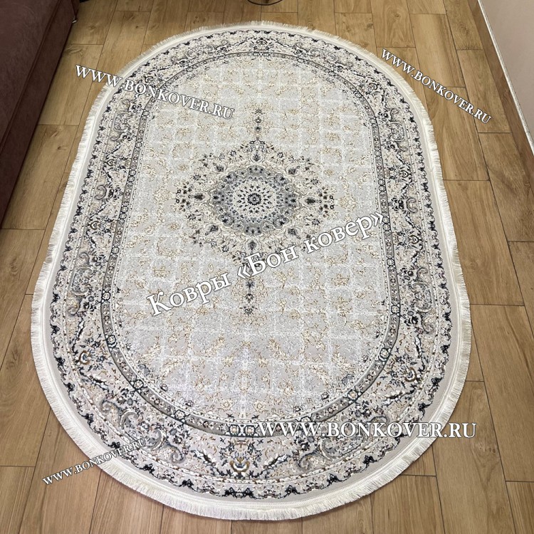 Ковер С Восточным Узором Арт 29676 Турция New Овальный станет идеальным дополнением интерьера, оформленного в современном или классическом стиле. Мягкое, но прочное, ковровое изделие обеспечивает тепло- и шумоизоляцию, отличается длительным сроком эксплуатации, пожаробезопасностью, экологичностью и высокой износостойкостью, является отличной защитой от повышенной влажности в комнате и утеплителем для холодного пола. Благодаря качеству материалов, ковер не деформируется, сохраняет первоначальный вид под тяжестью предметов мебели. За его поверхностью легко ухаживать.