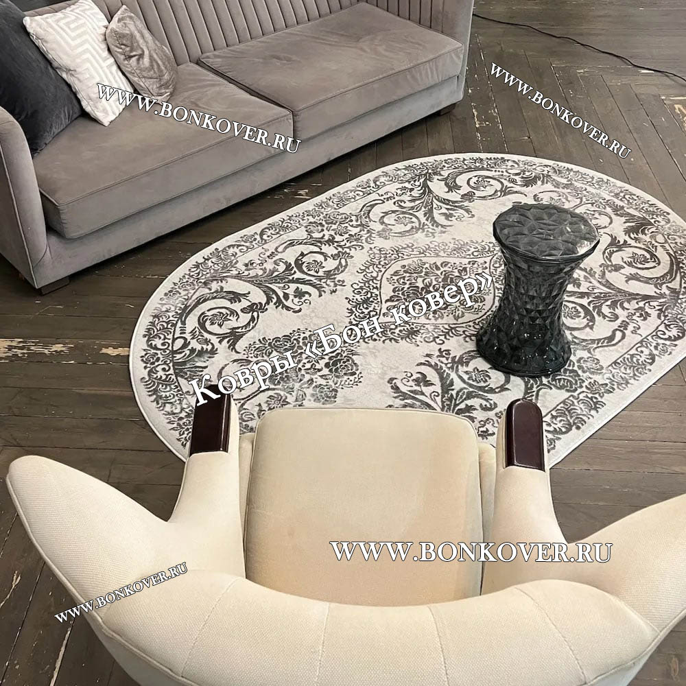 Ковер в гостиную дизайн 12 Серый Овал станет идеальным преображением вашей комнаты, подчеркивая высокий статус хозяина.