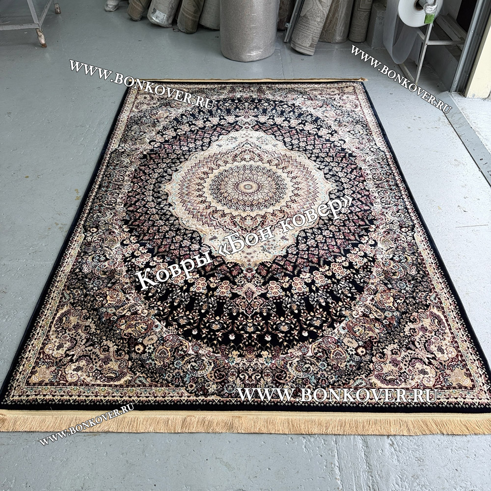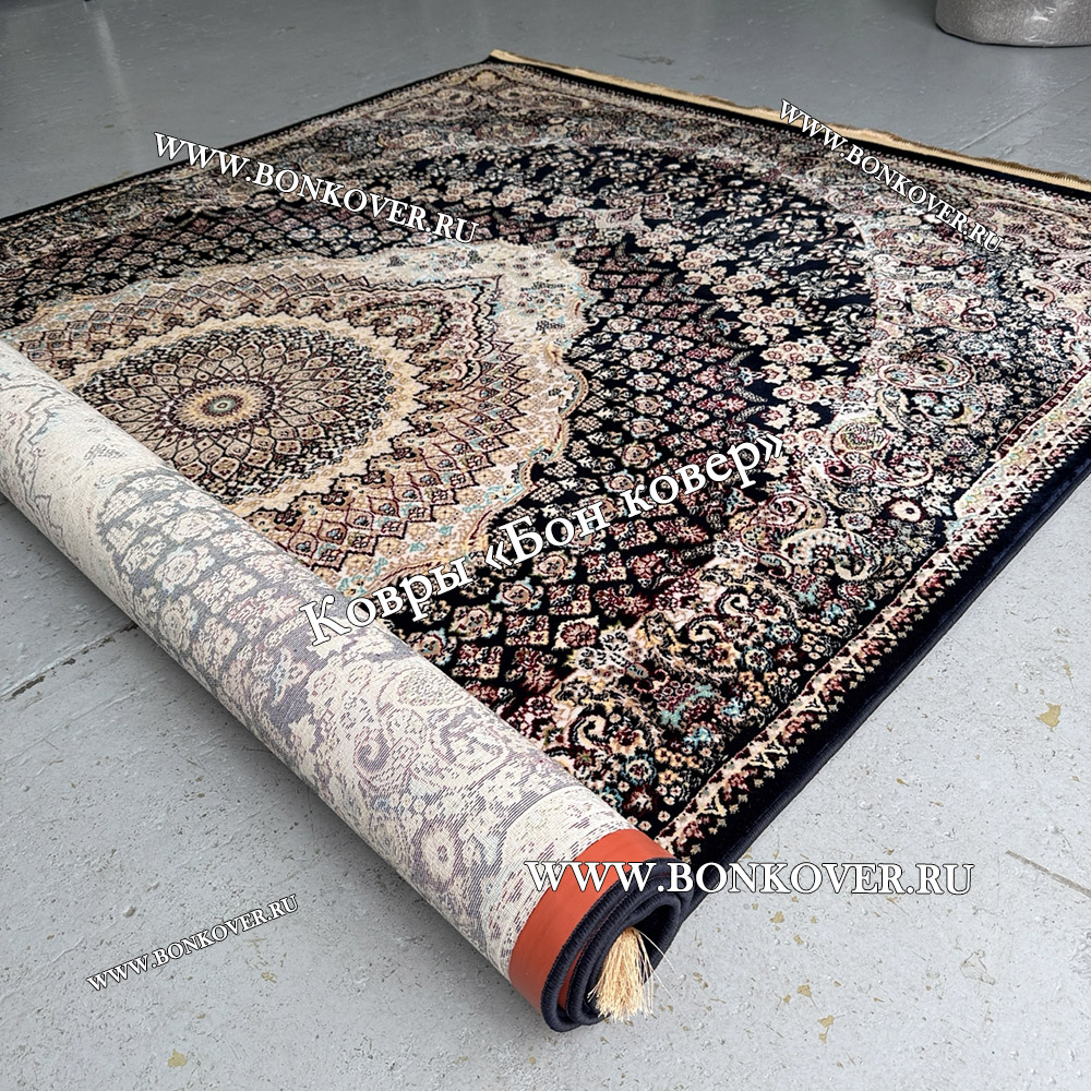 24.12.2023 Читать полный отзывДолго искали смотрели на разных сайтах , в итоге ваш ковер приглянулся больше всего . Доставили в рулоне на следующий день , оплатили при получении . Идеальный вариант , цвет темно синий с переливом - рисунок очень выйгрышно смотрится !